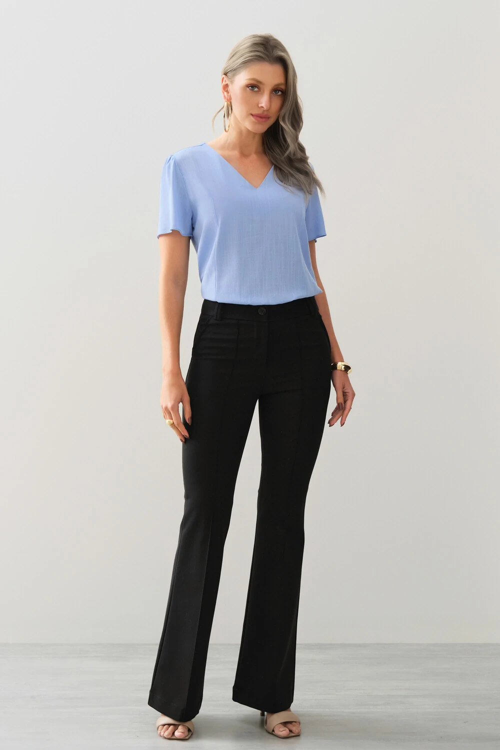 Blusa Decote V Recortes Laterais