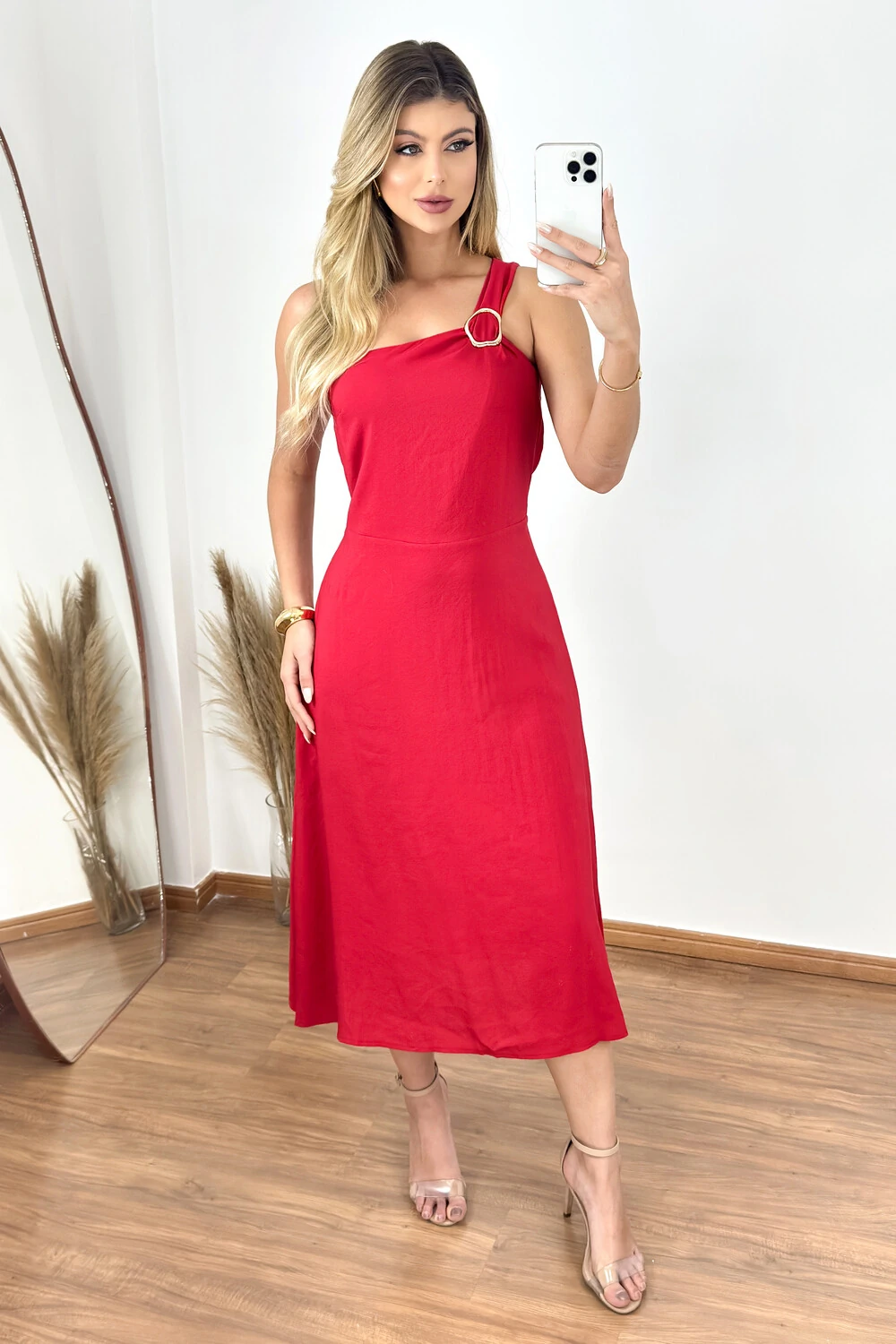 Vestido Midi Regata Assimétrico Um Ombro Só Gold