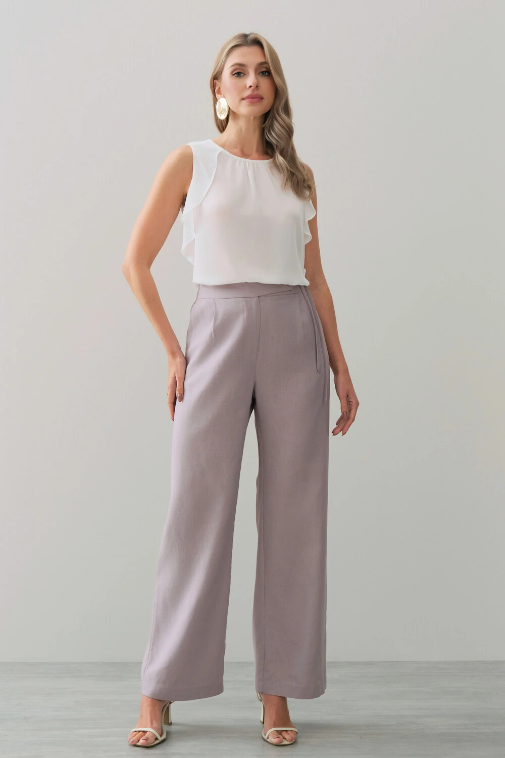 Calça Reta de Linho Prega Laço Lateral