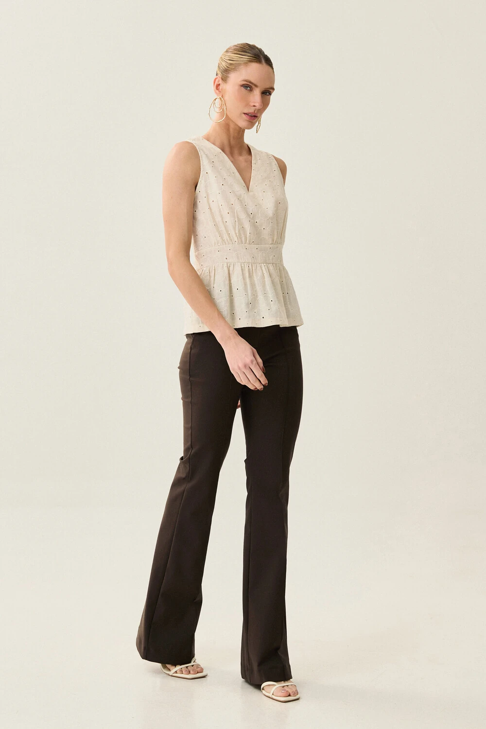 Regata de Laise de Algodão Acinturada Recorte Decote V