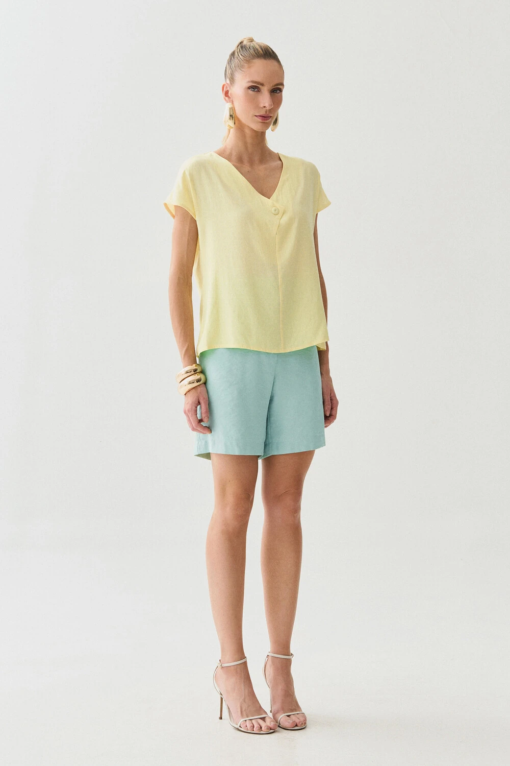 Blusa Manga Morcego Decote V Transpassado Botão Forrado
