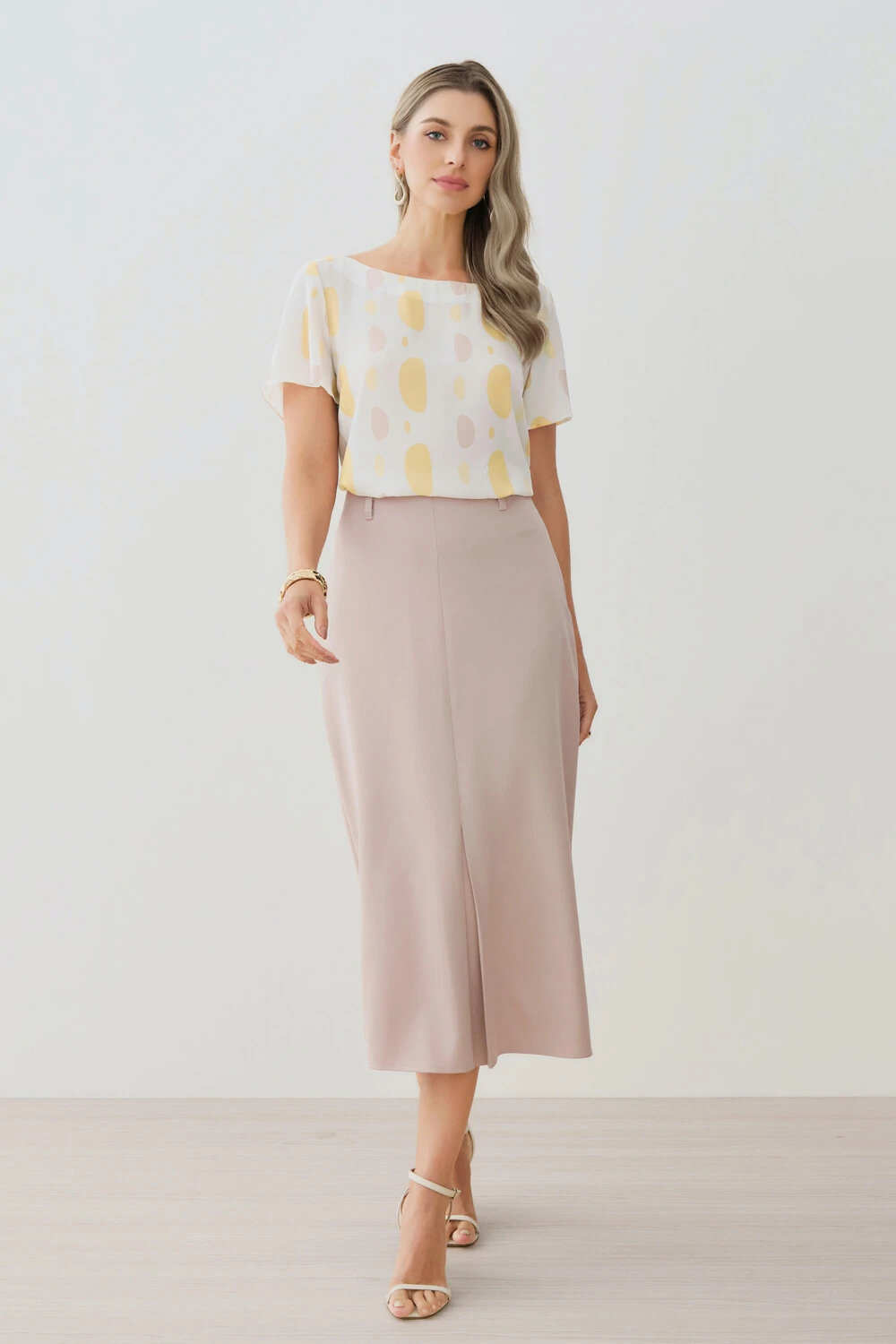 Saia Midi Reta de Alfaiataria Recorte Prega Frontal