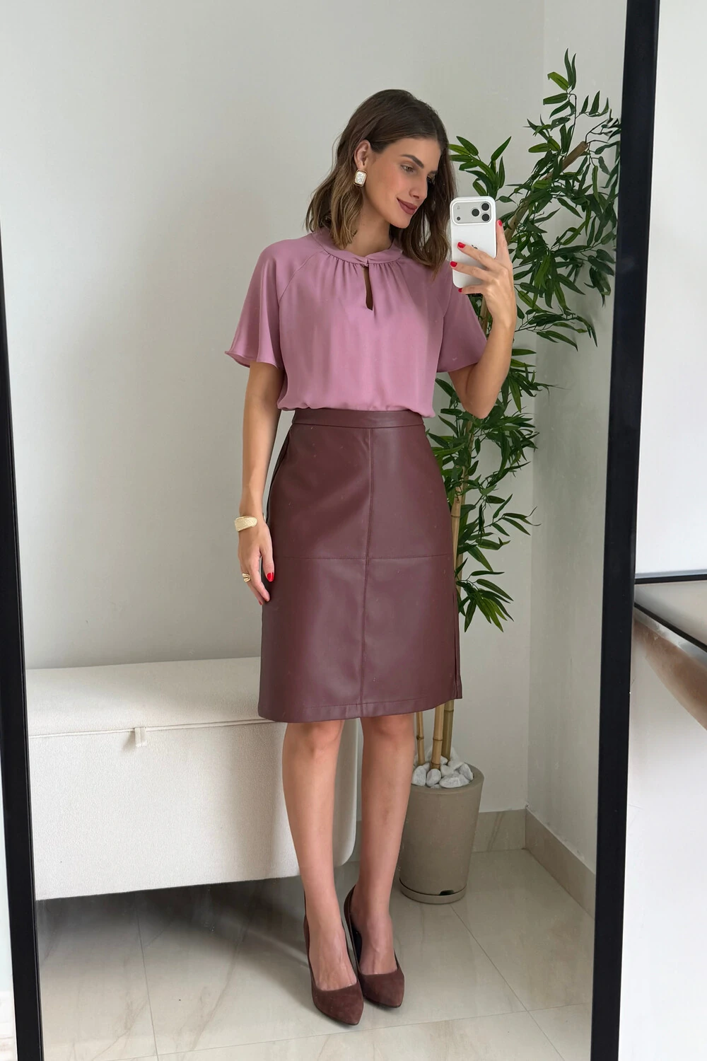 Blusa Manga Raglan Gola Baixa Torcida Decote Gota Franzido