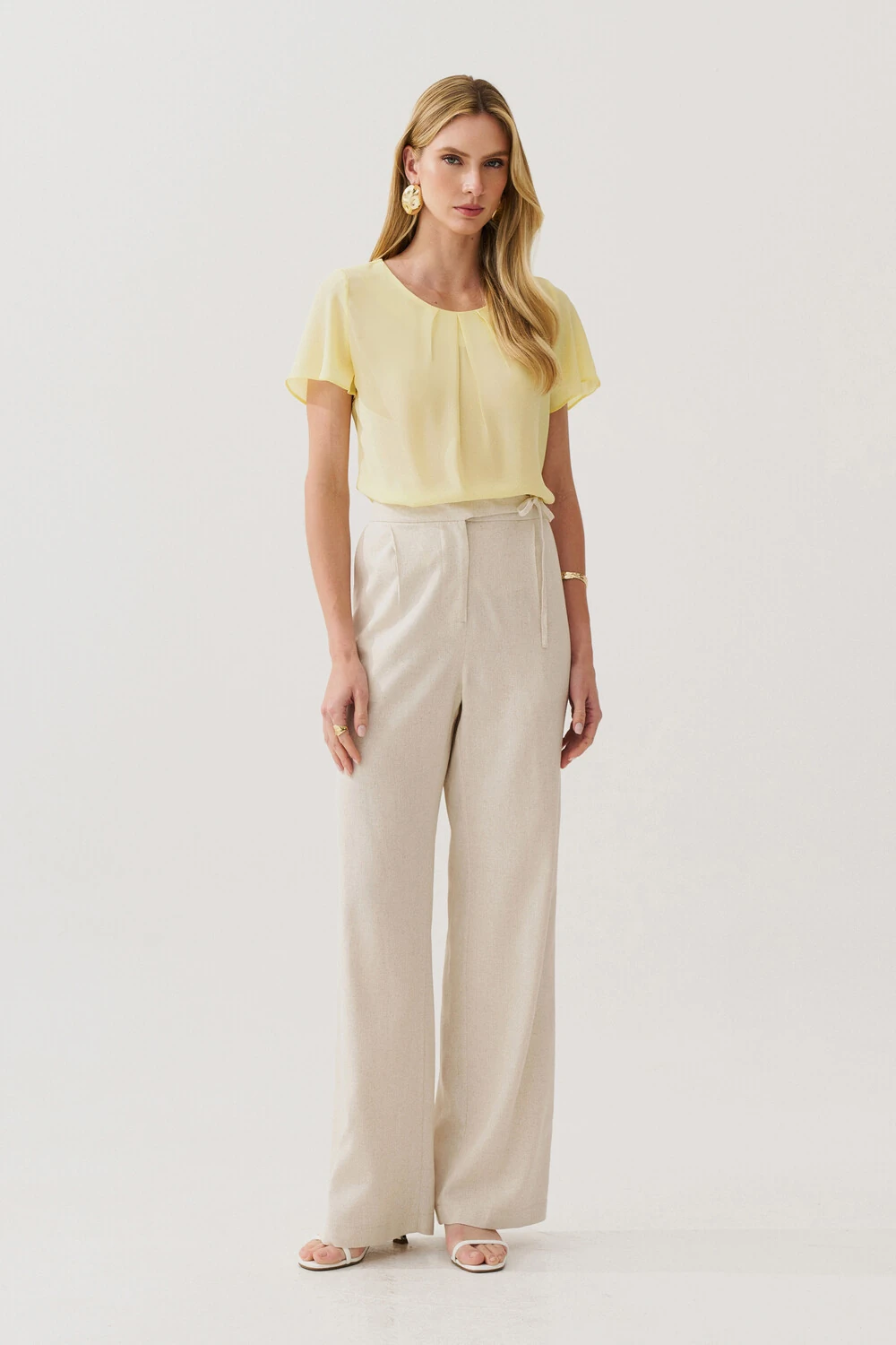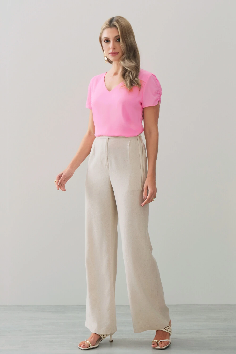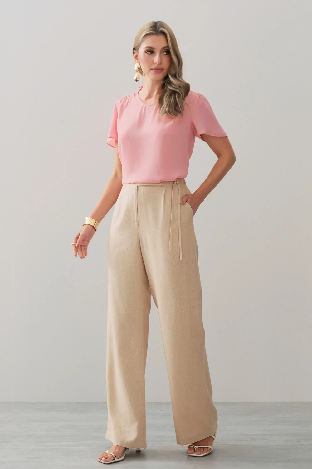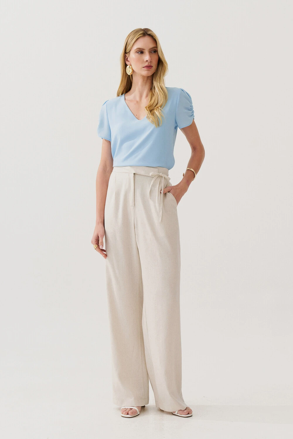 O linho é considerado um tecido nobre. Por ser um tecido natural, é muito fresco, pois as fibras naturais permitem que o tecido respire bem. Também presenta um aspecto mais rústico, porém muito elegante, além de um excelente caimento e um movimento de leveza. O tecido é sensível com atrito forte.
