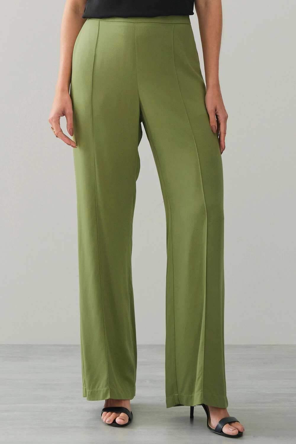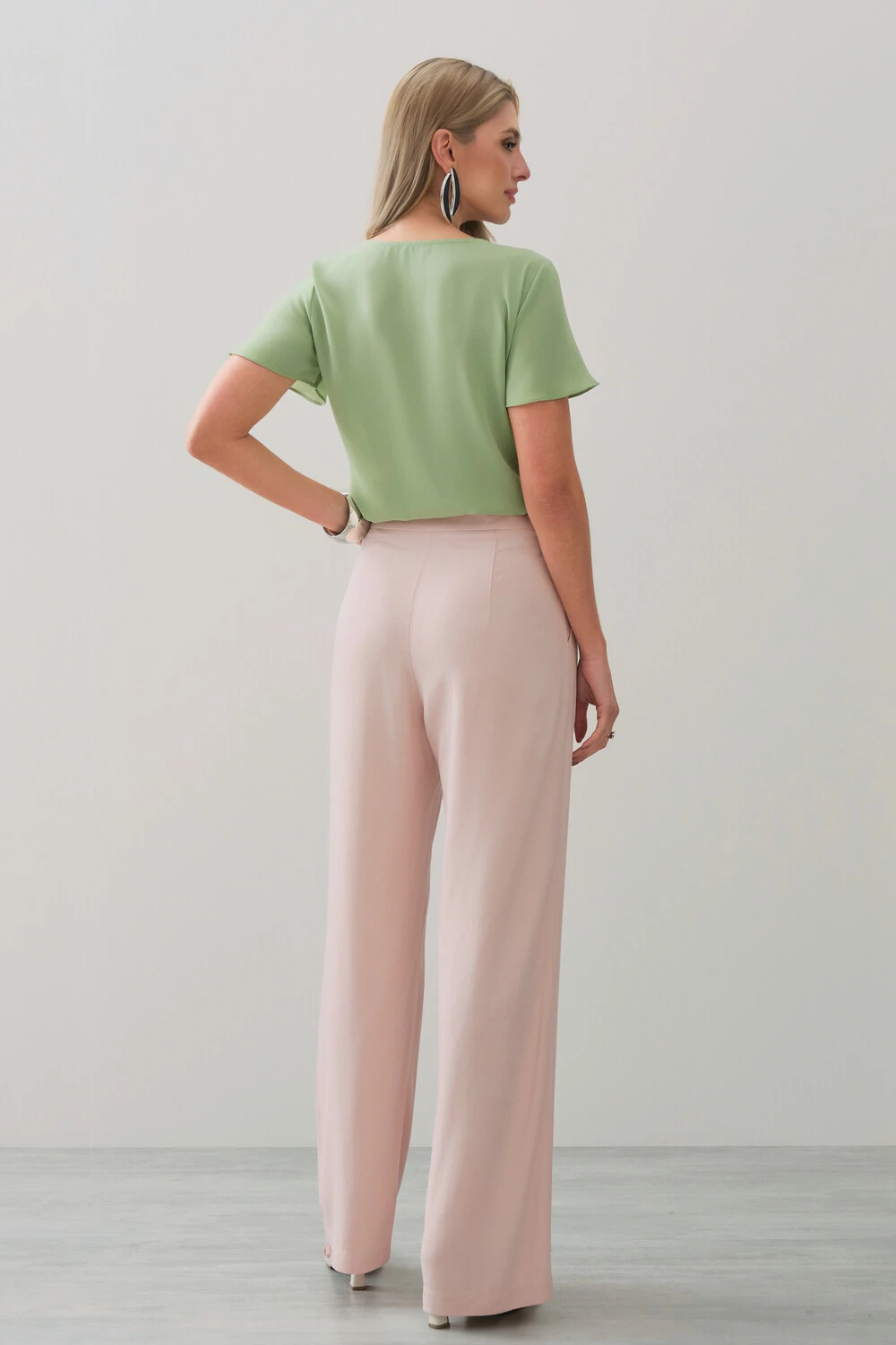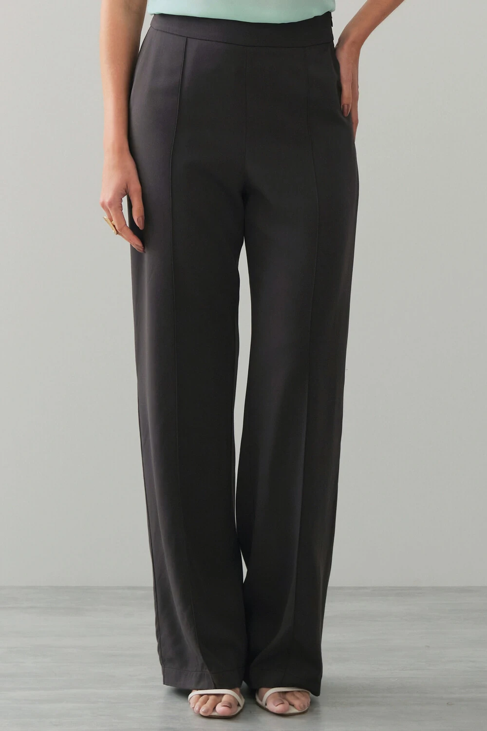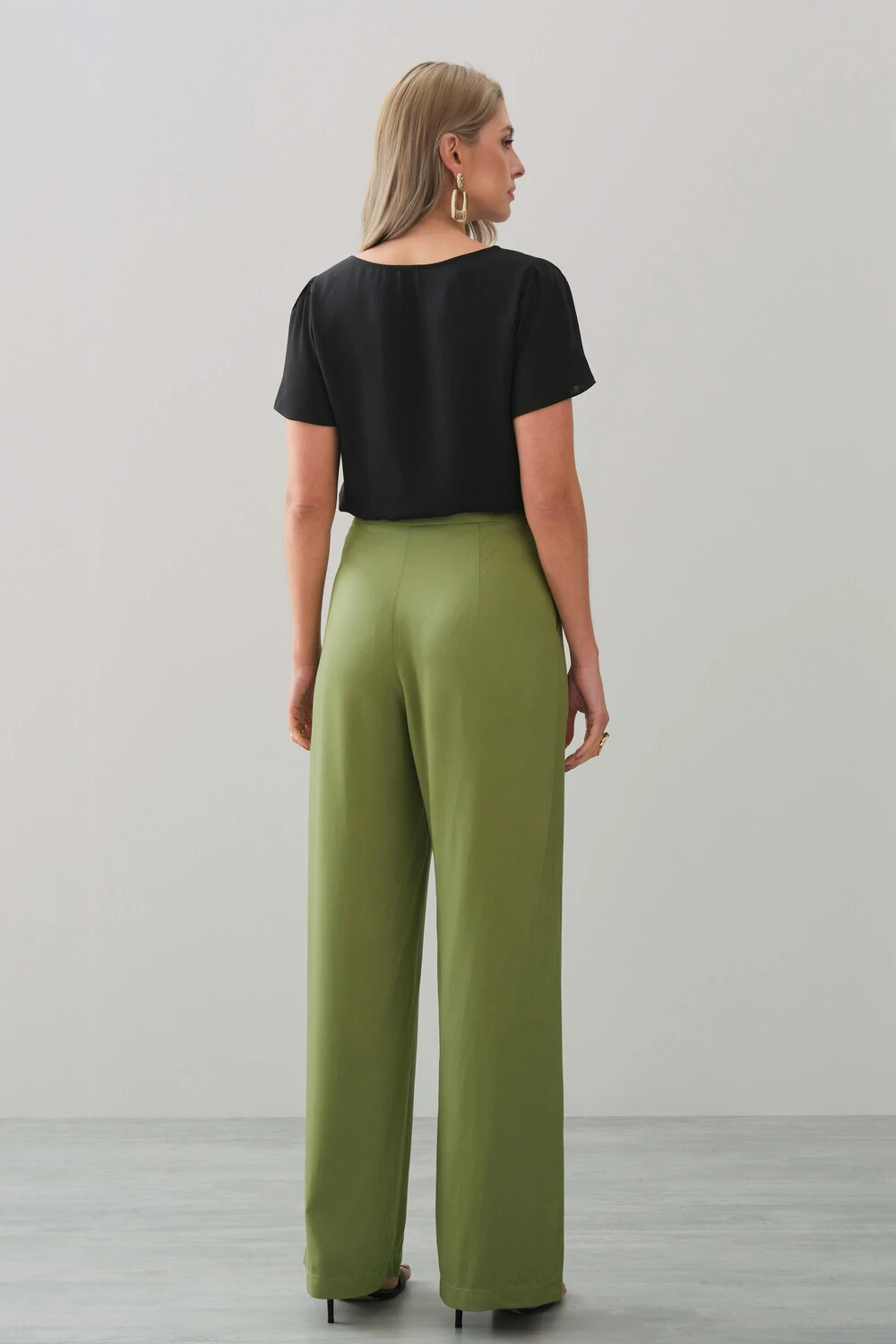 Calça reta com nervura. A calça contém o ziper invisível na lateral.