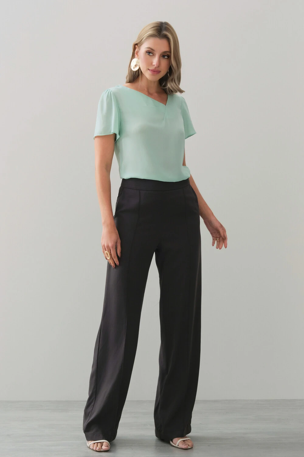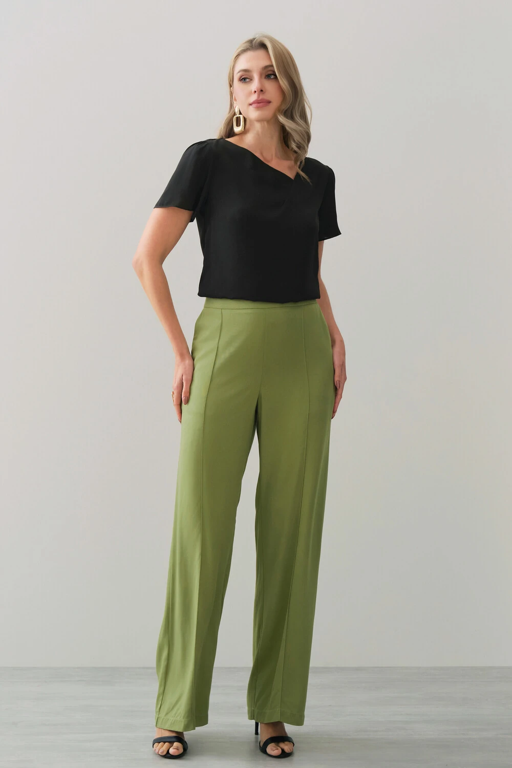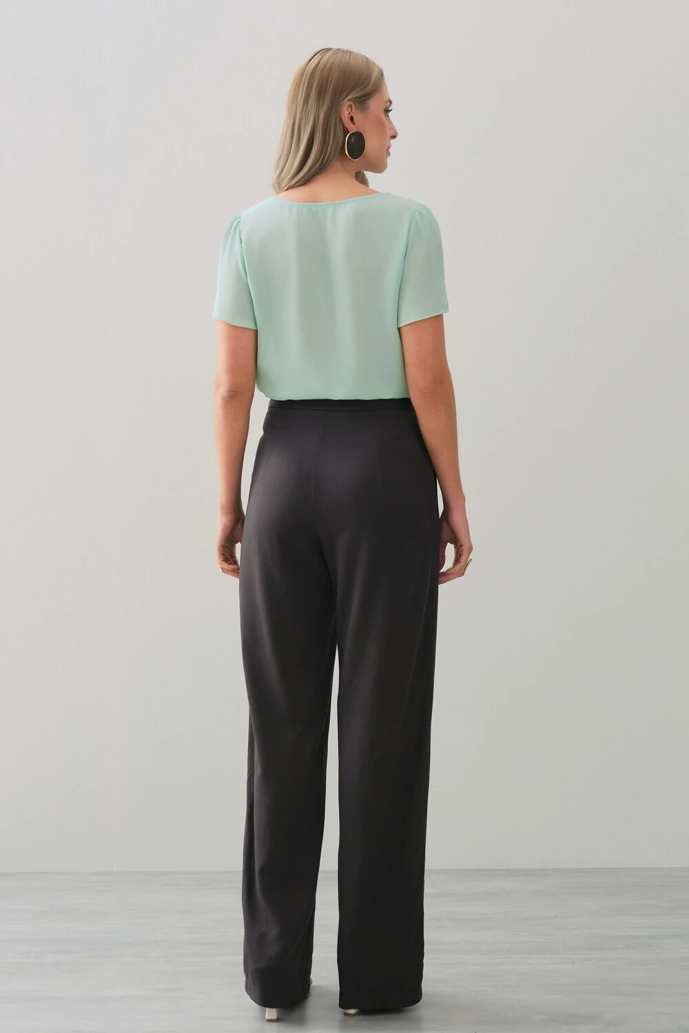 Calça reta com nervura. A calça contém o ziper invisível na lateral.