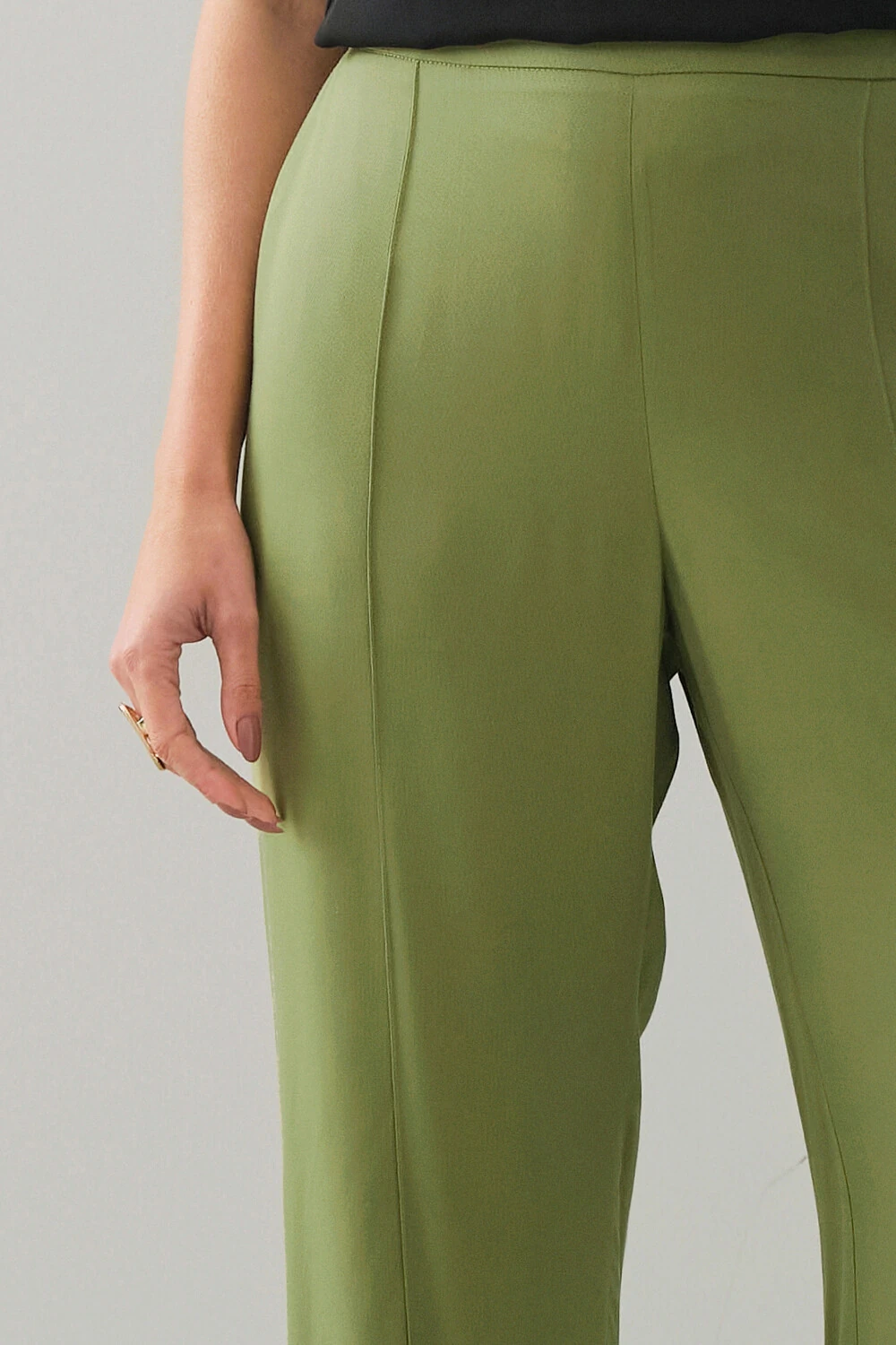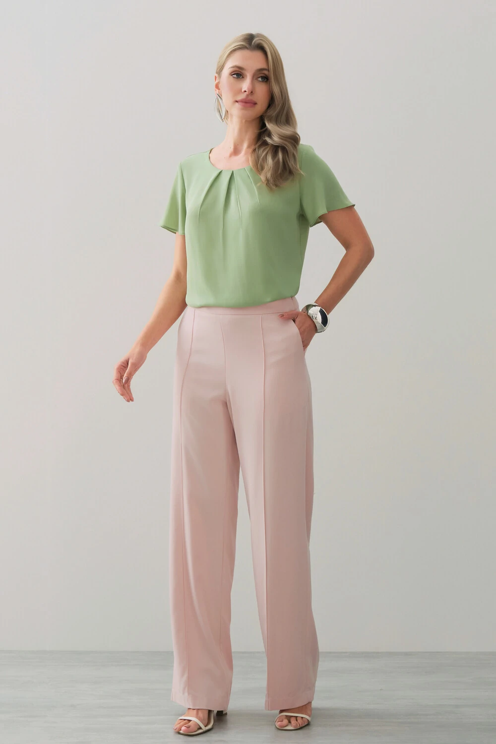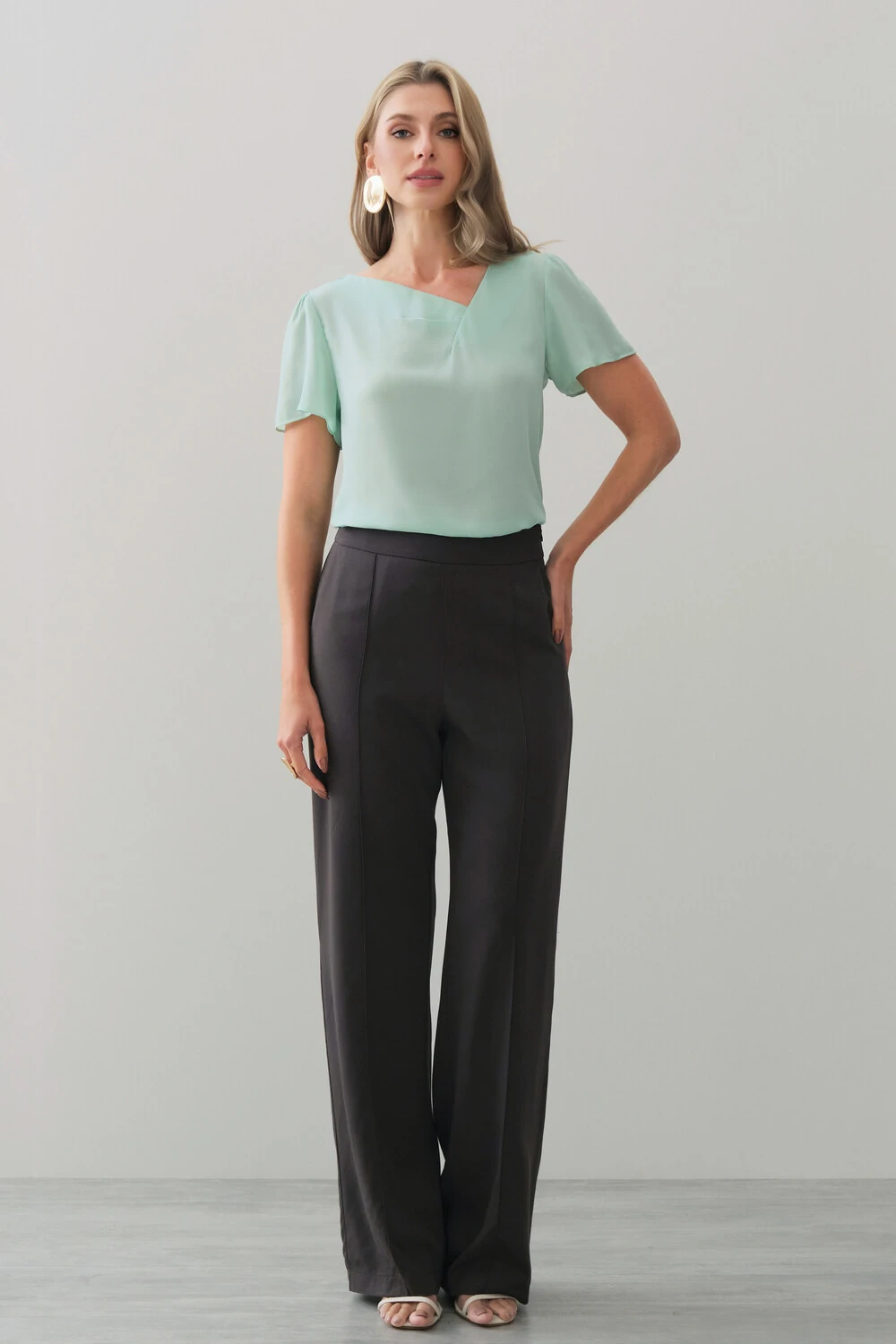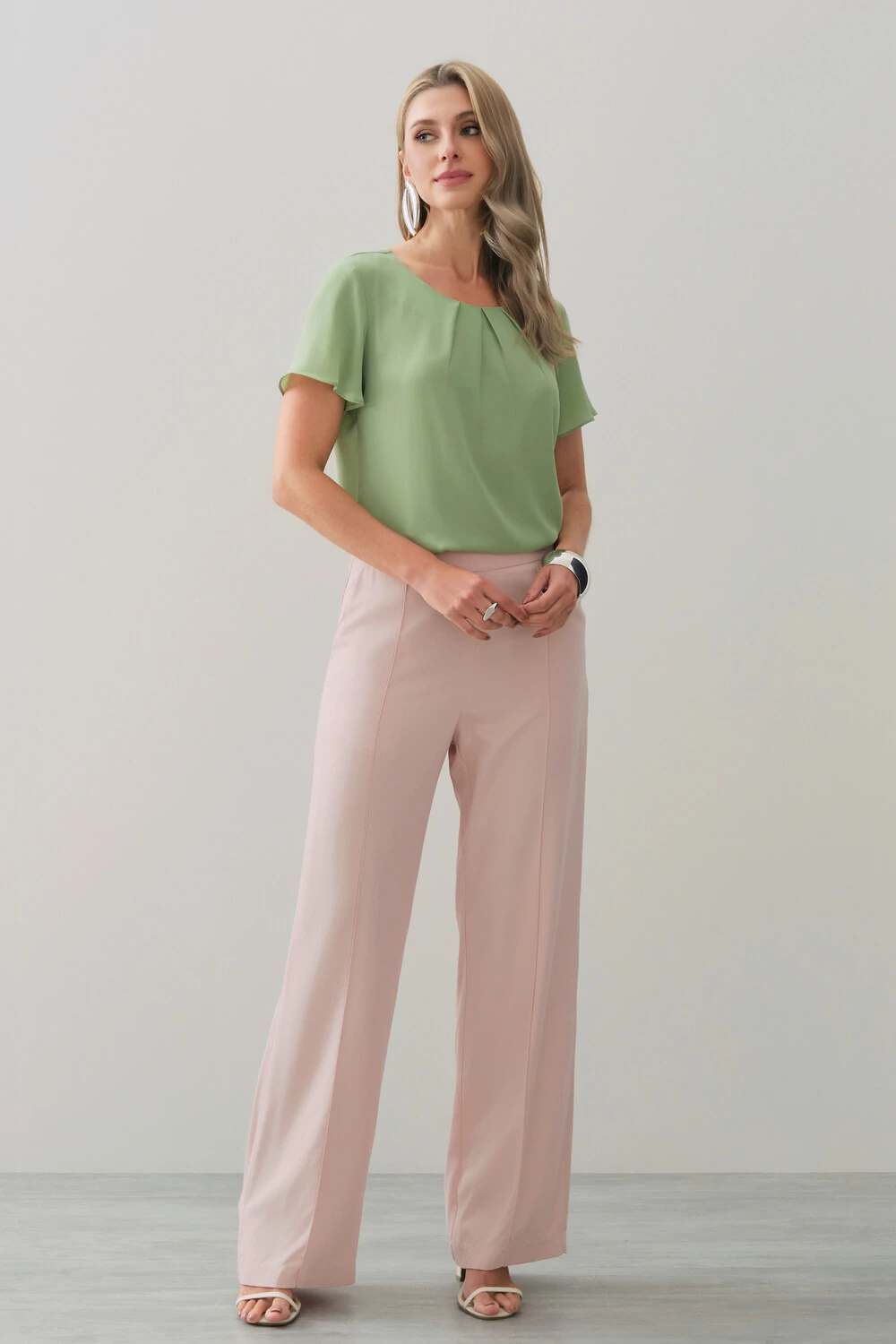 Calça reta com nervura. A calça contém o ziper invisível na lateral.