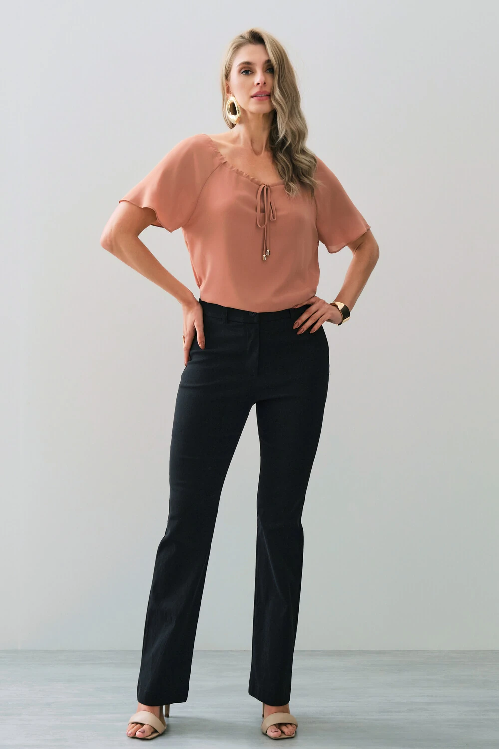 O tecido possue excelente conforto, bastante elasticidade, além de praticidade e resistência. São bem encorpados, de toque macio e não amassam.