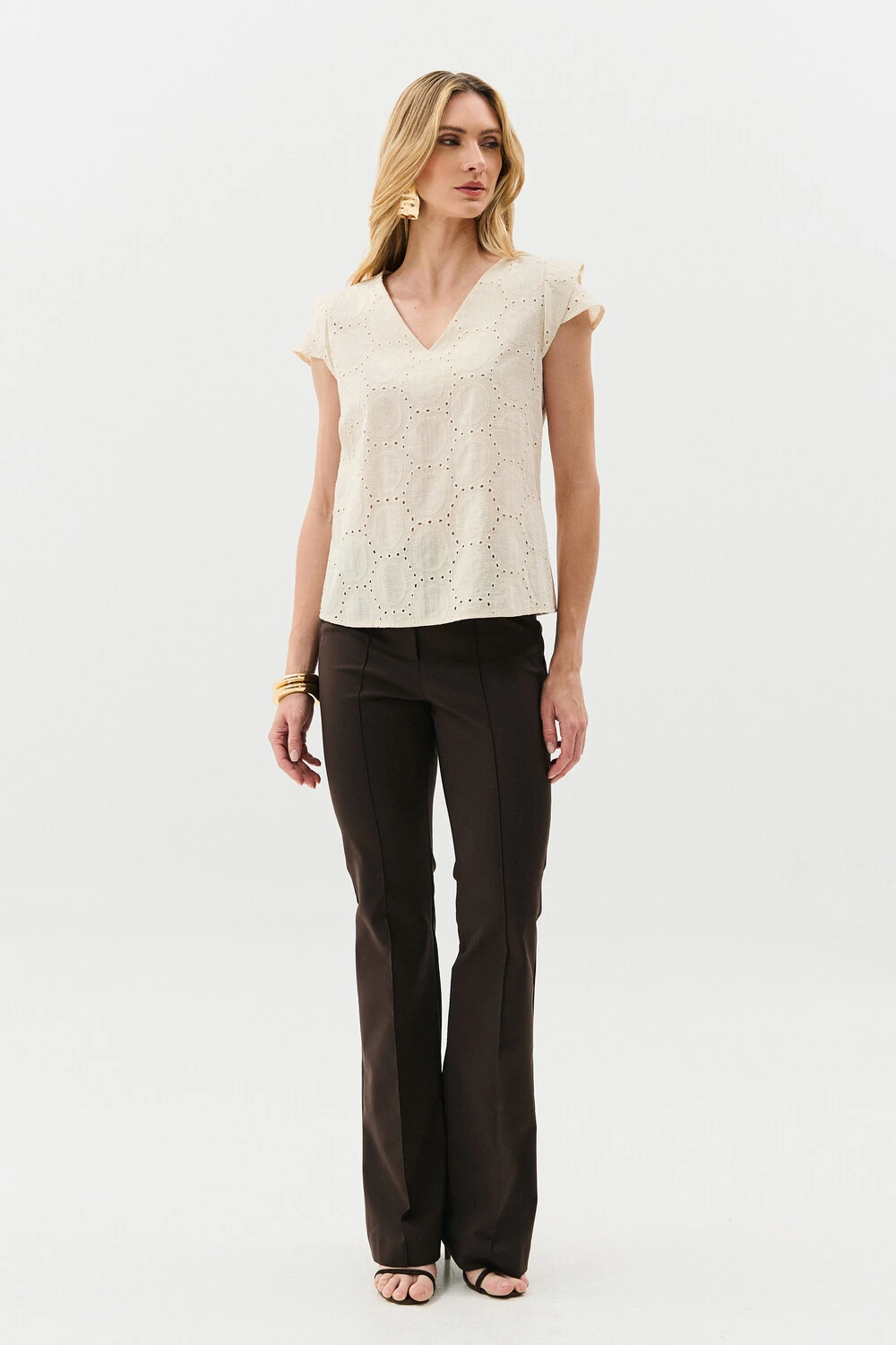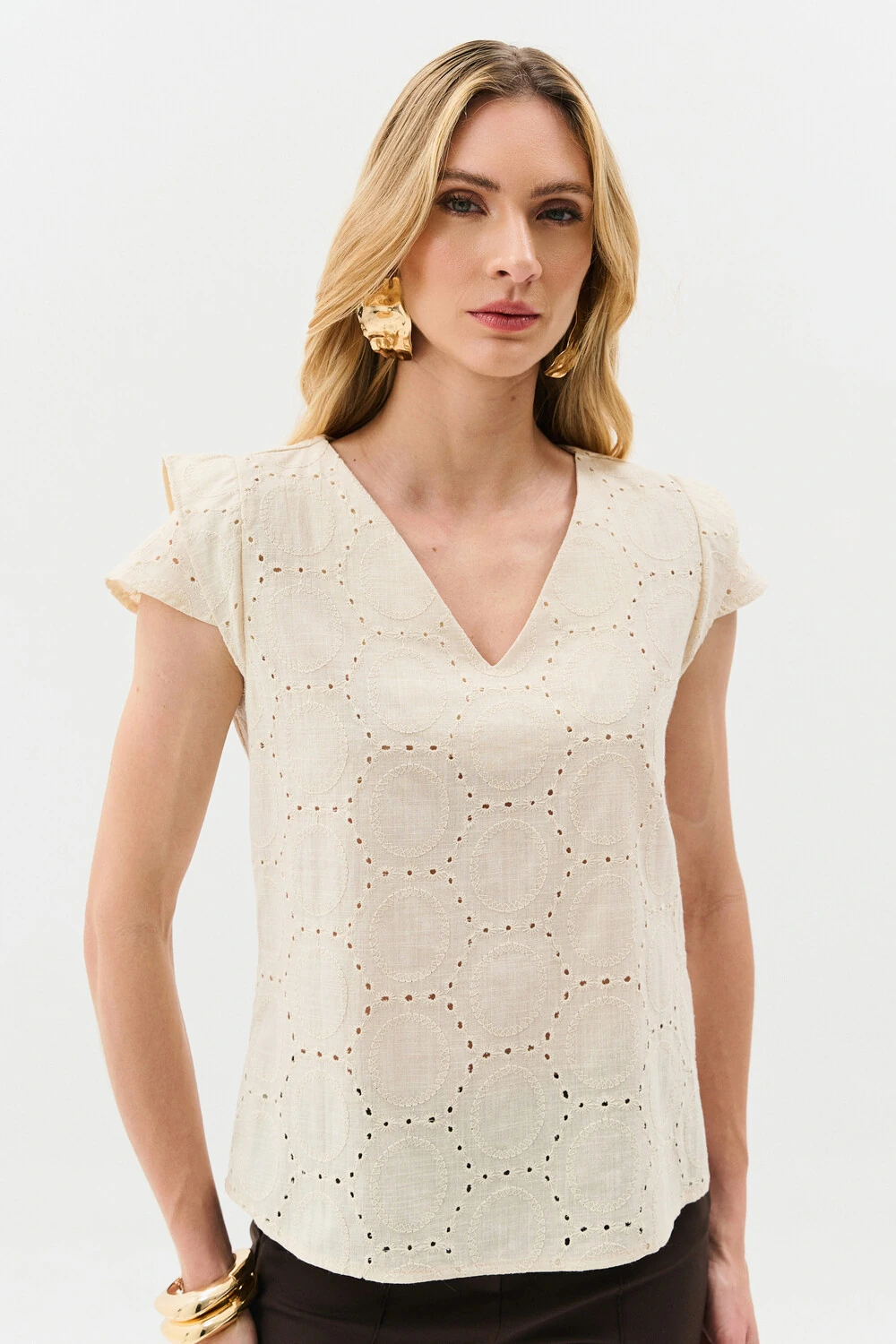 O tecido Laise é todo trabalhado com bordados em relevo vazados, delicado e levinho, geralmente é de algodão.