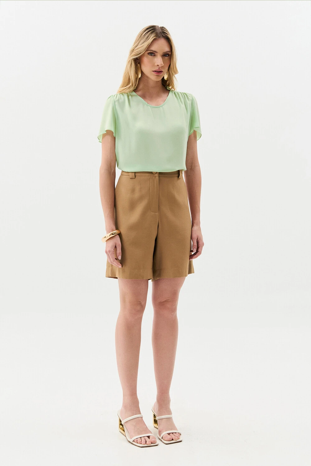 O Crepe é um tecido plano levemente encorpado, que tem como principal característica o toque suave e o ótimo caimento que proporciona às roupas. O Crepe é um dos tecidos que amassa menos.