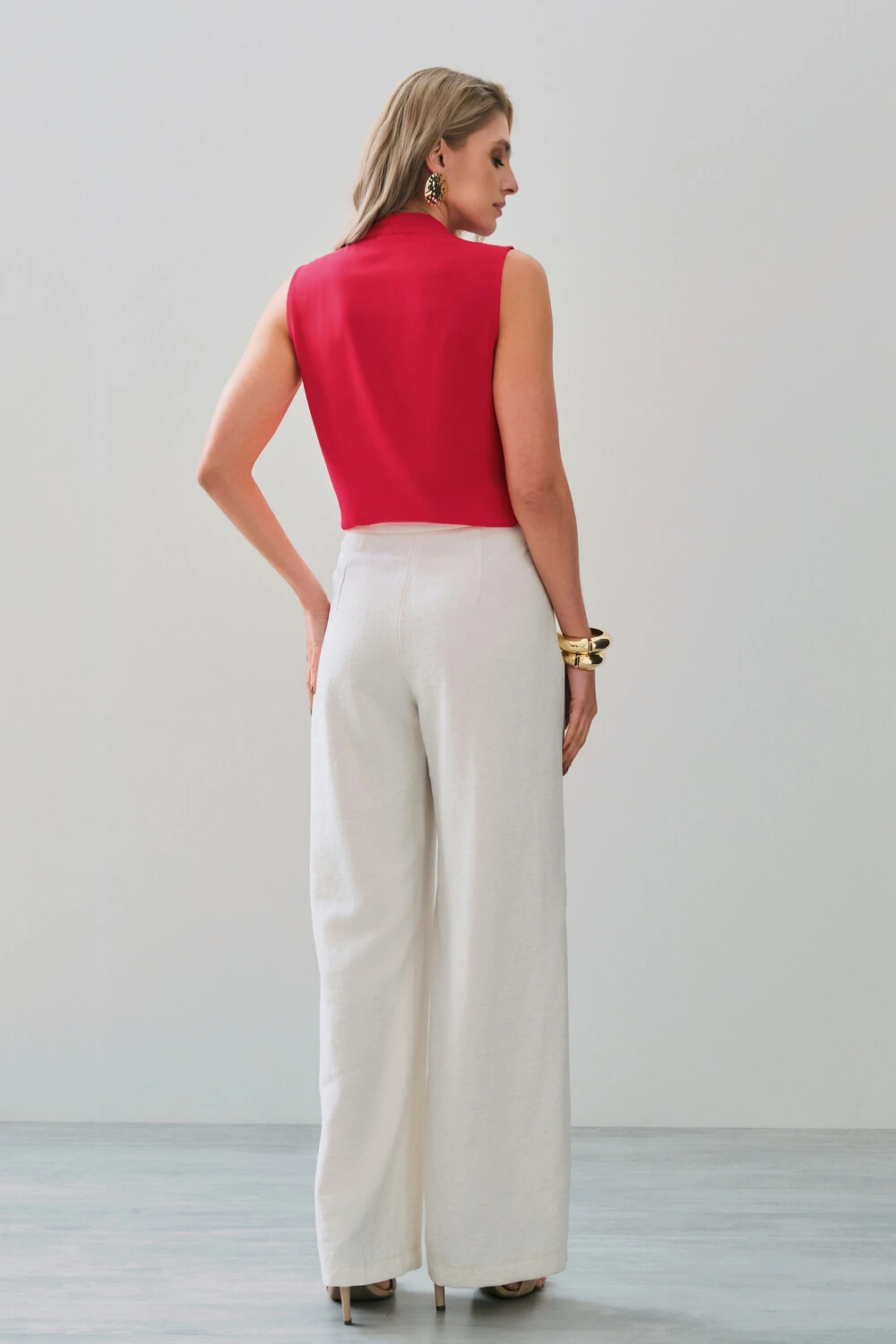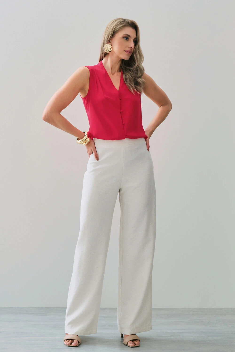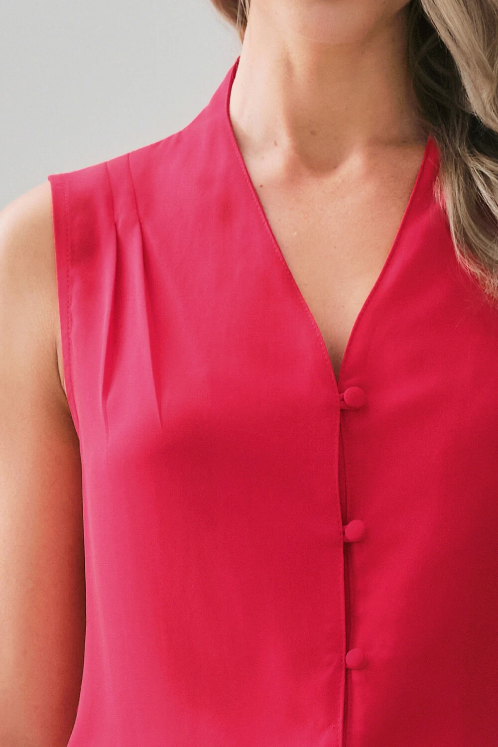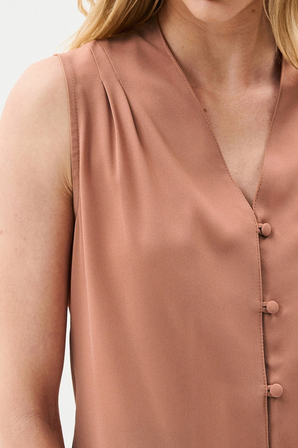 Camisa regata decote v com mini botões forrados e ombro com pregas.