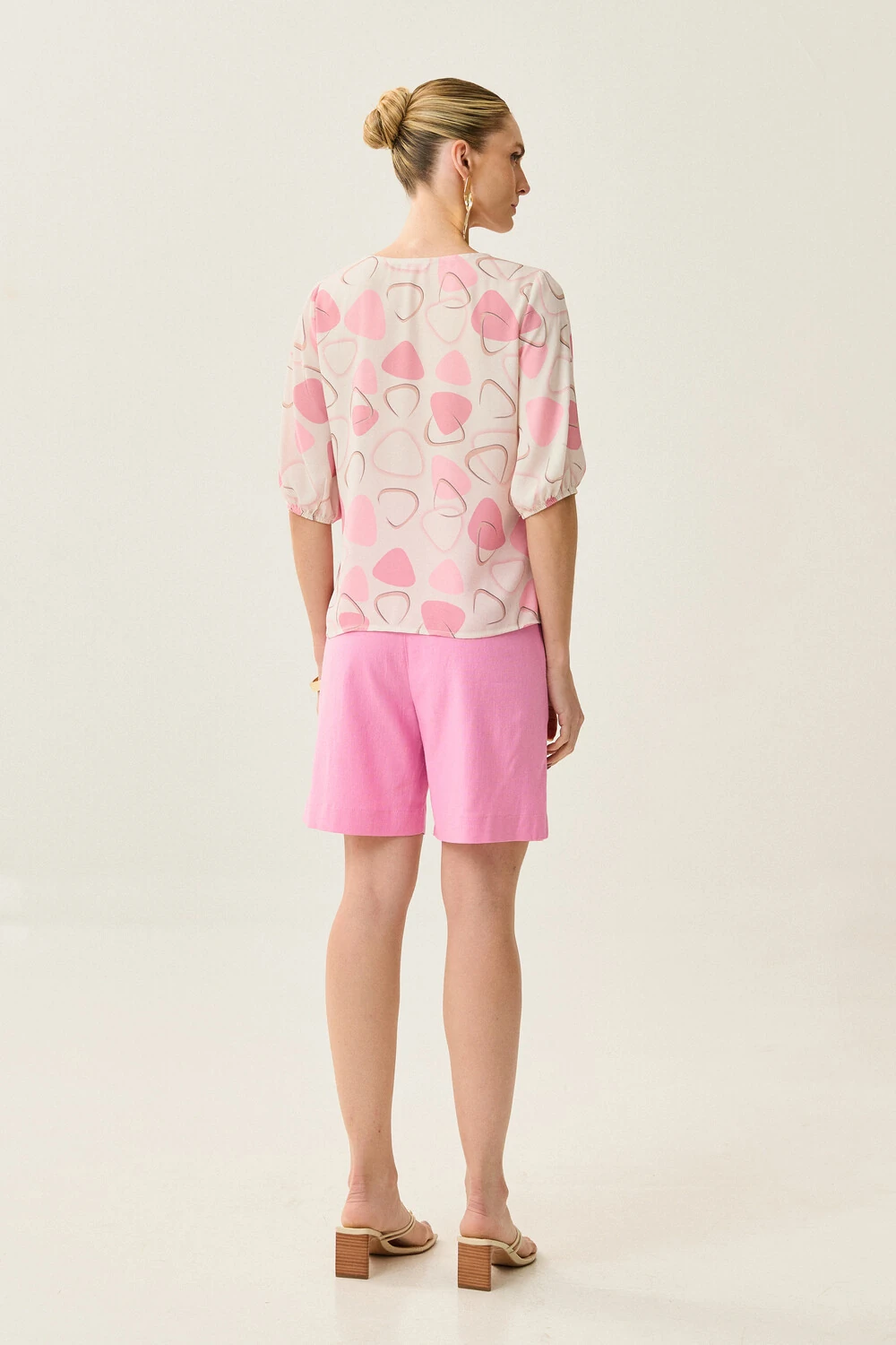 Blusa Abstrata Triângulo Manga 3/4 Elástico Decote V