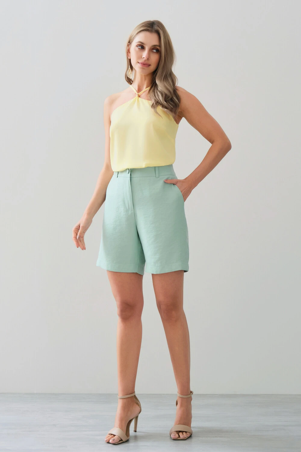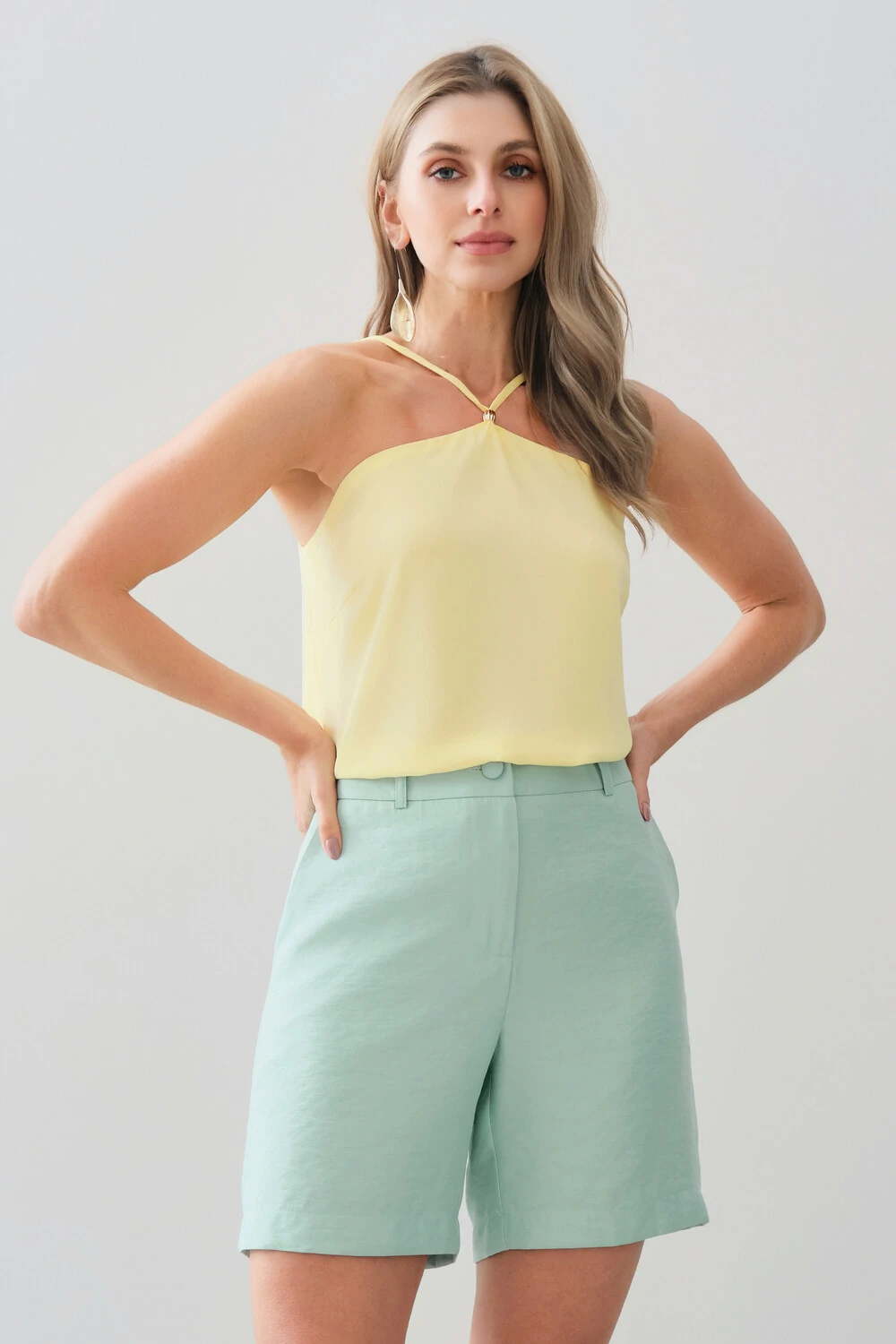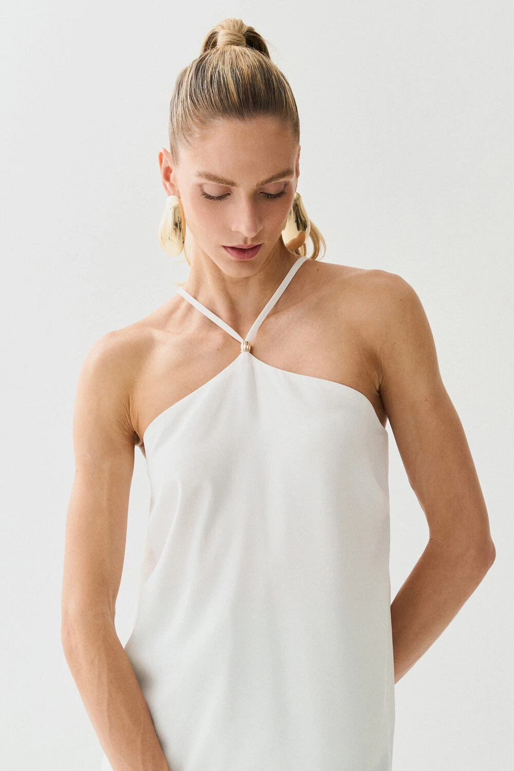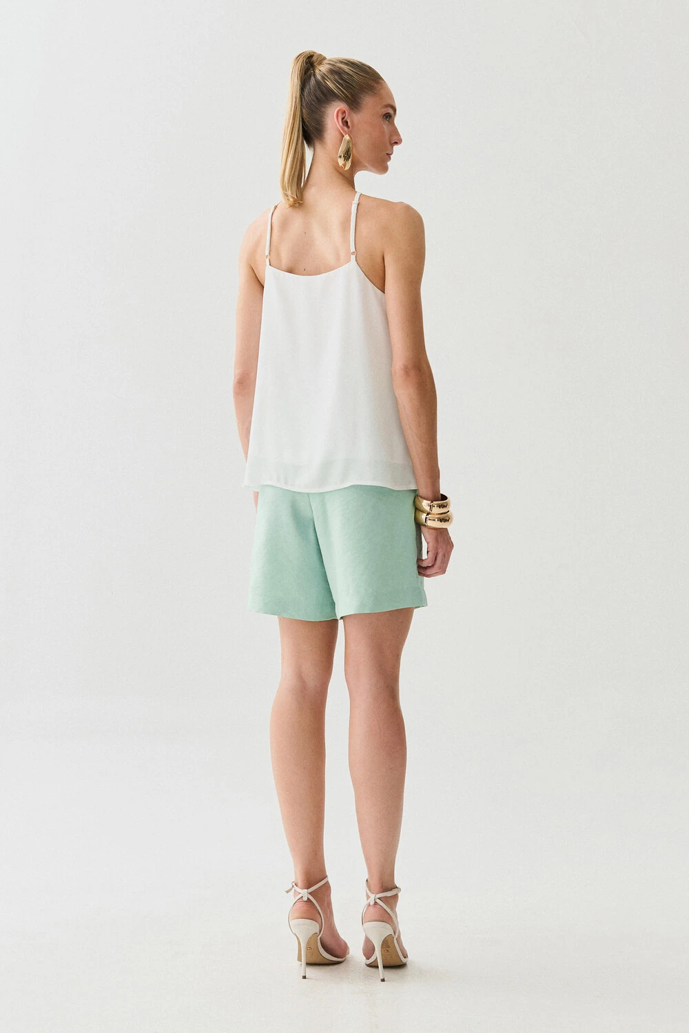 Blusa dupla de alcinha frente única com fivela dourada. A alcinha contém o regulador.