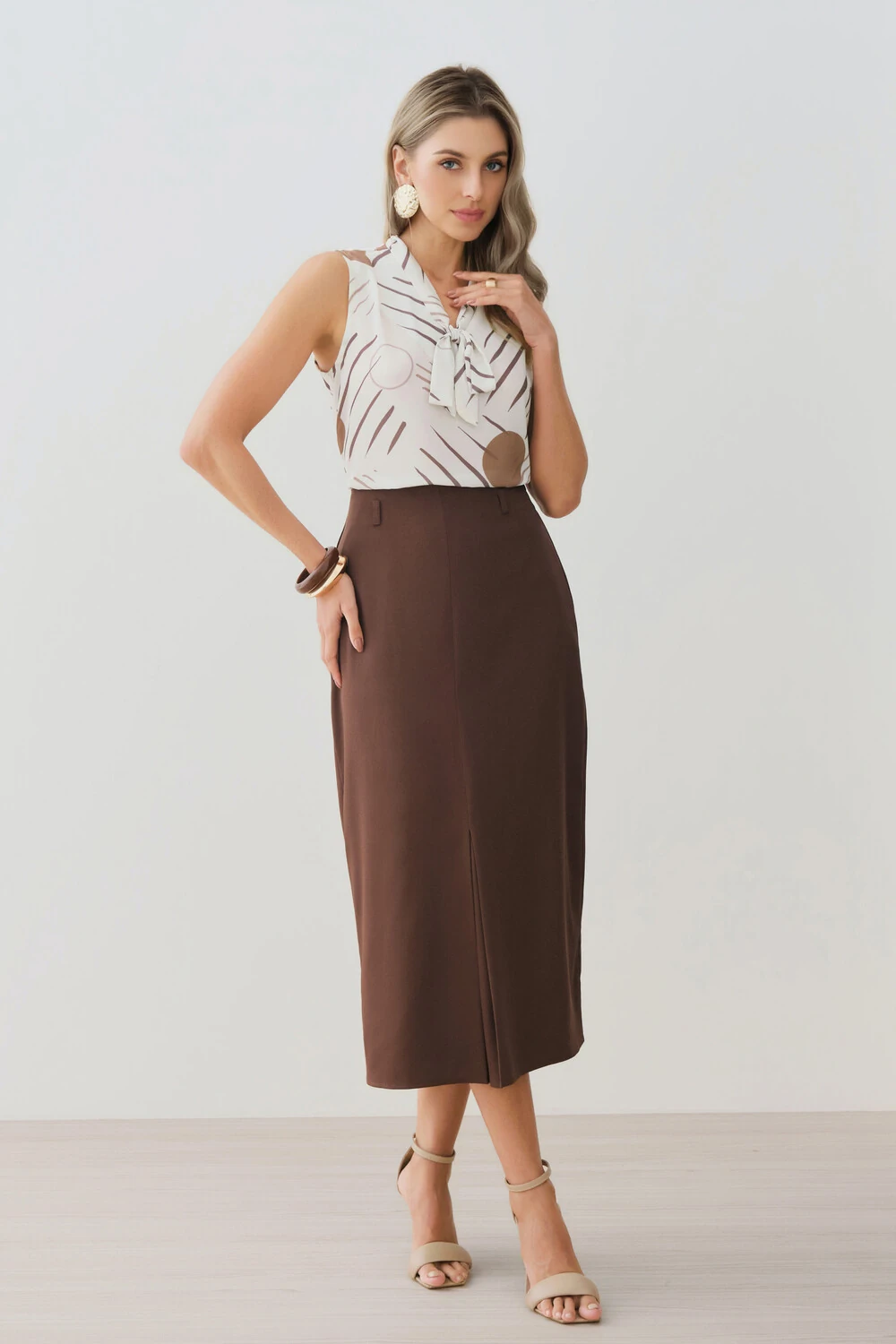 Modelo regata com modelagem reta e caimento leve, proporcionando sofisticação e conforto na medida certa.