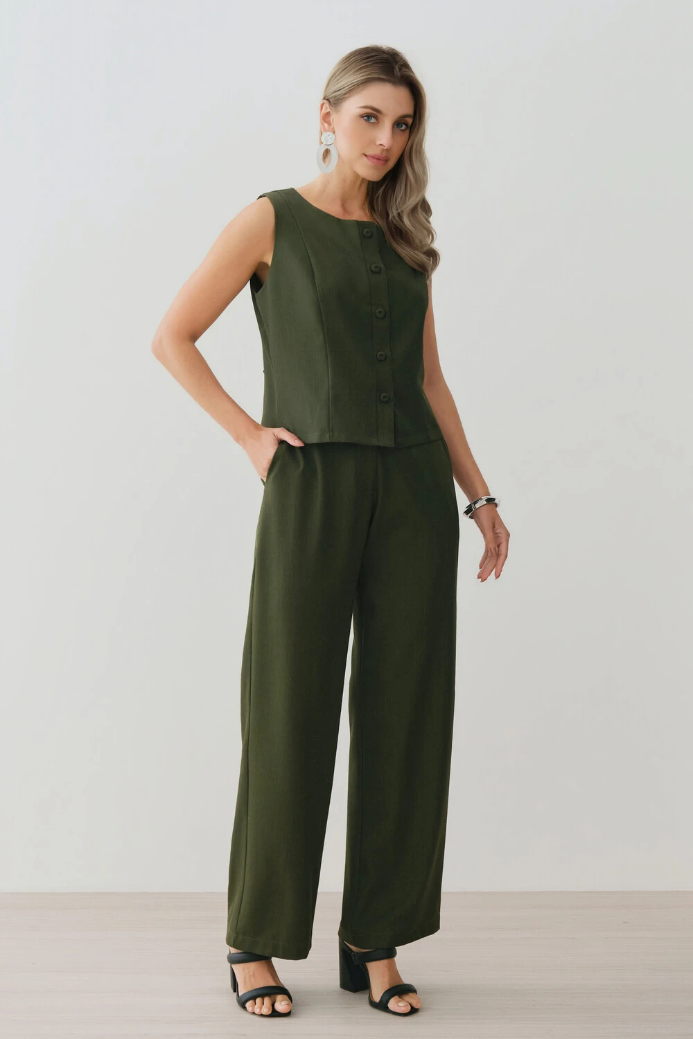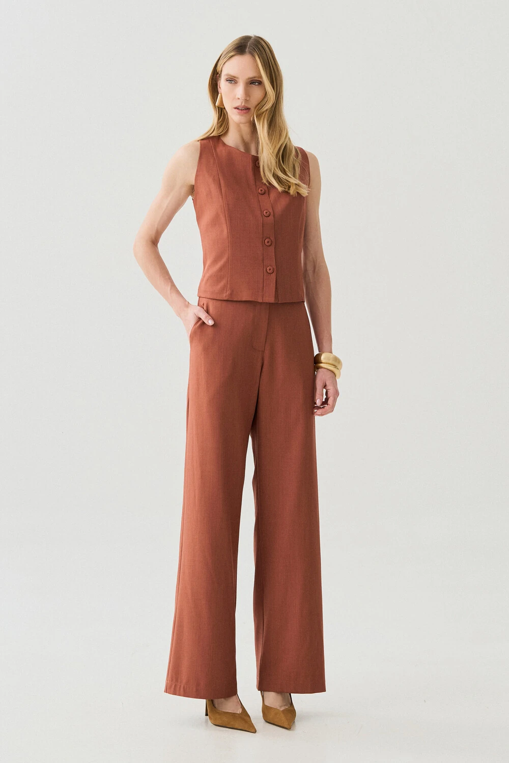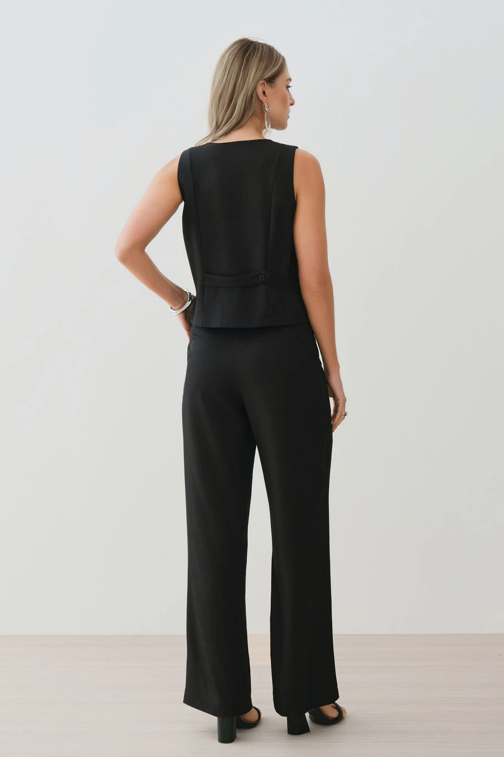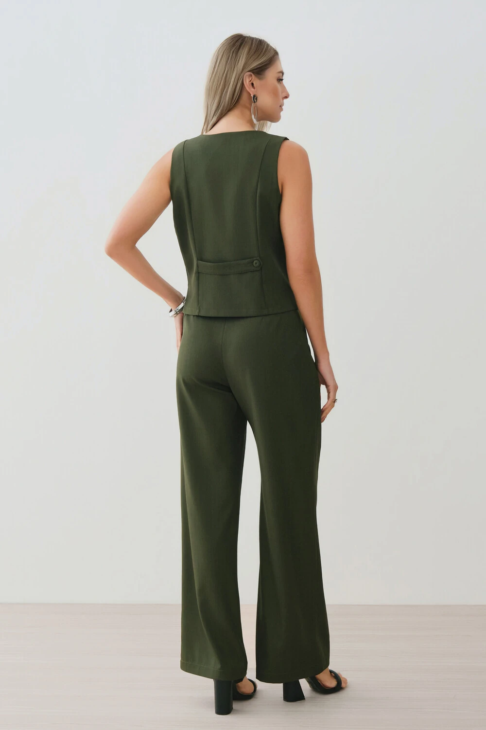 Conjunto de Alfaitaria Colete e Calça Reta Botões Forrados