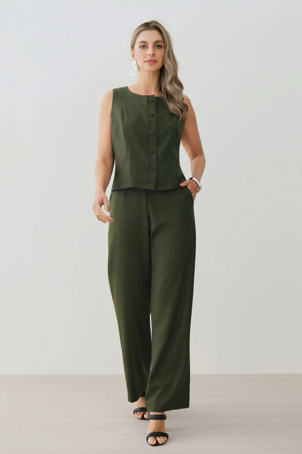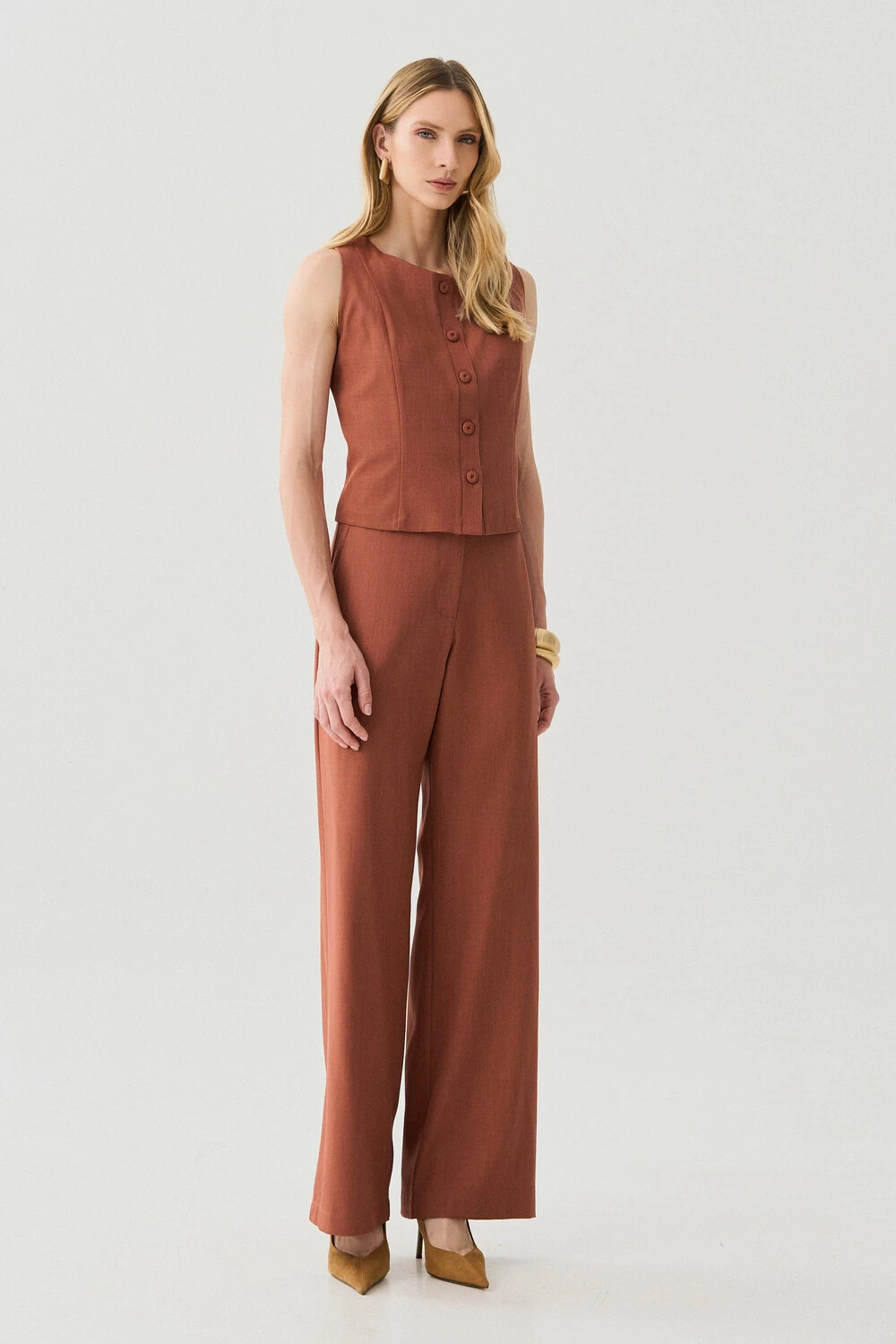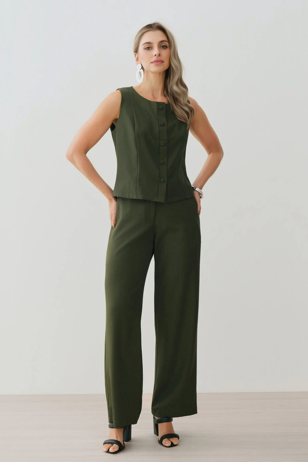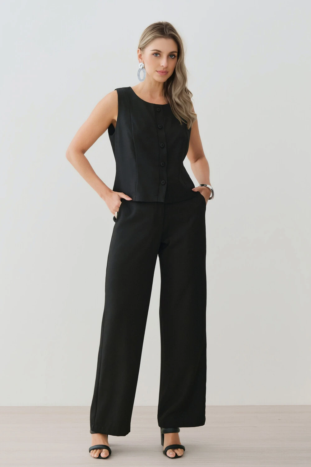 Conjunto de Alfaitaria Colete e Calça Reta Botões Forrados