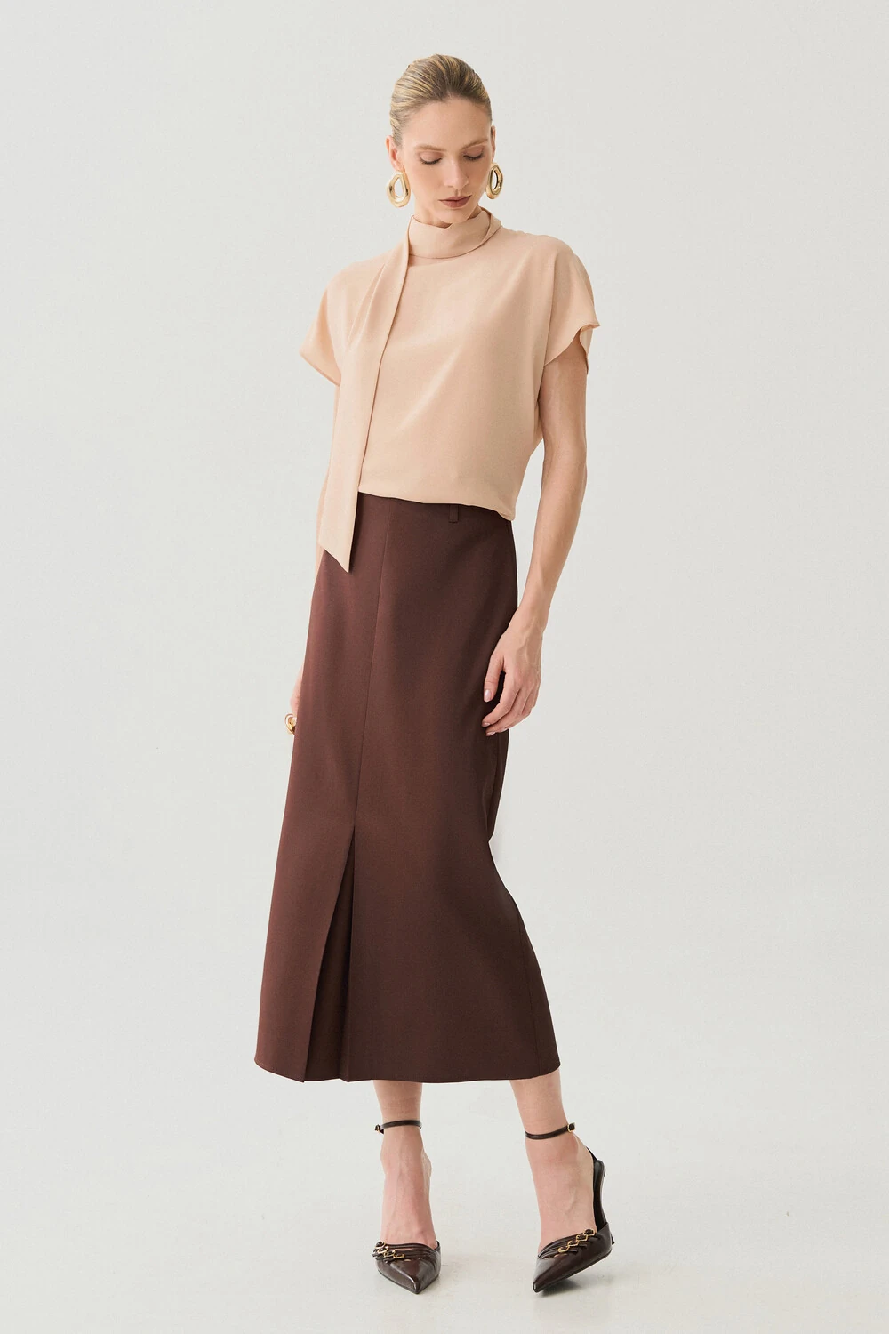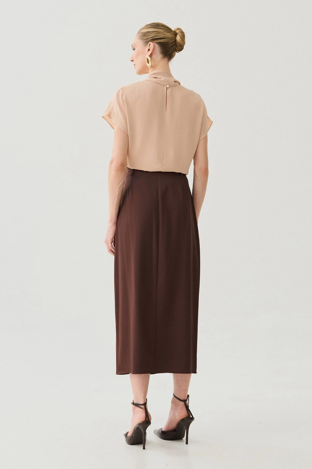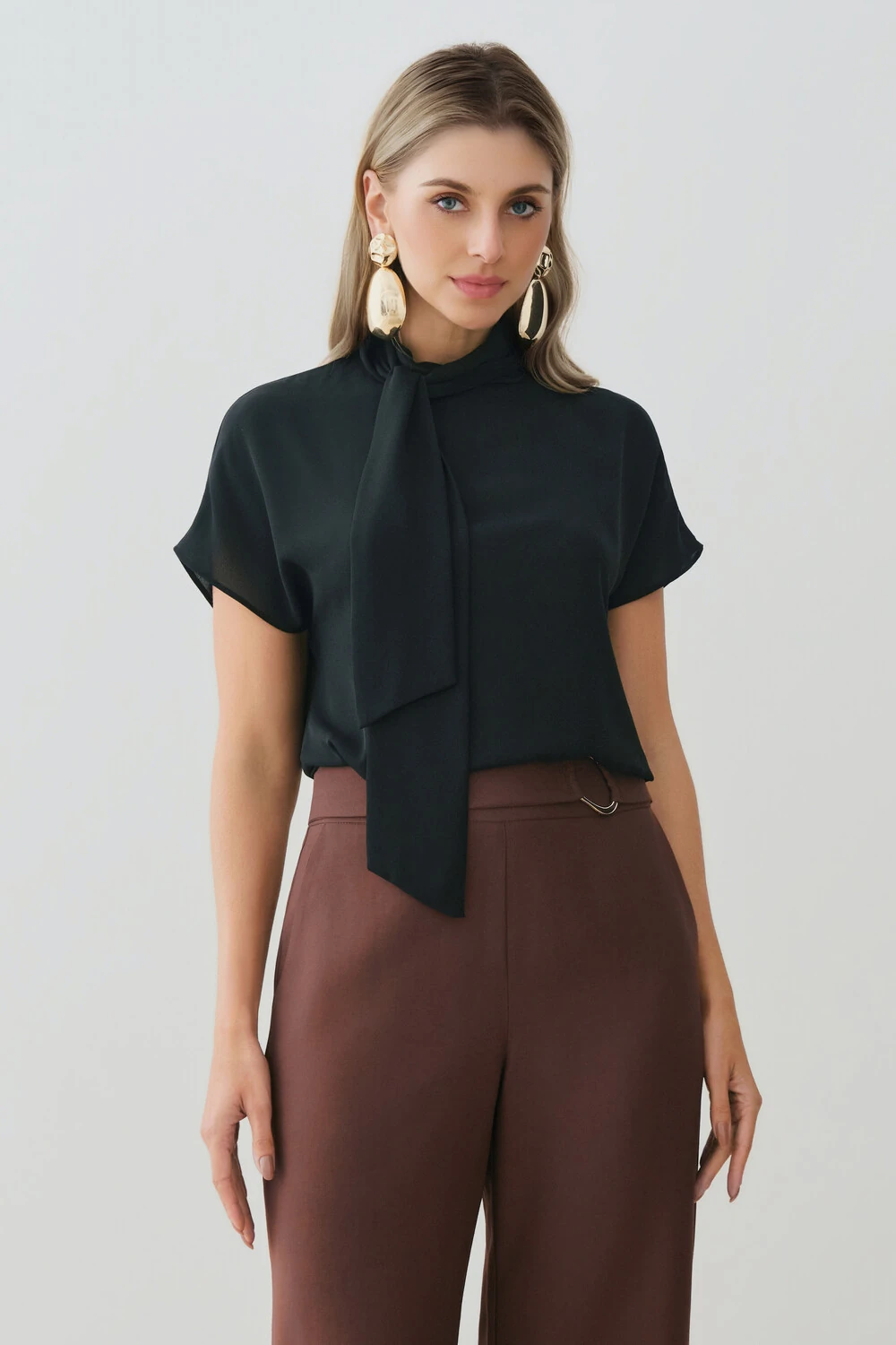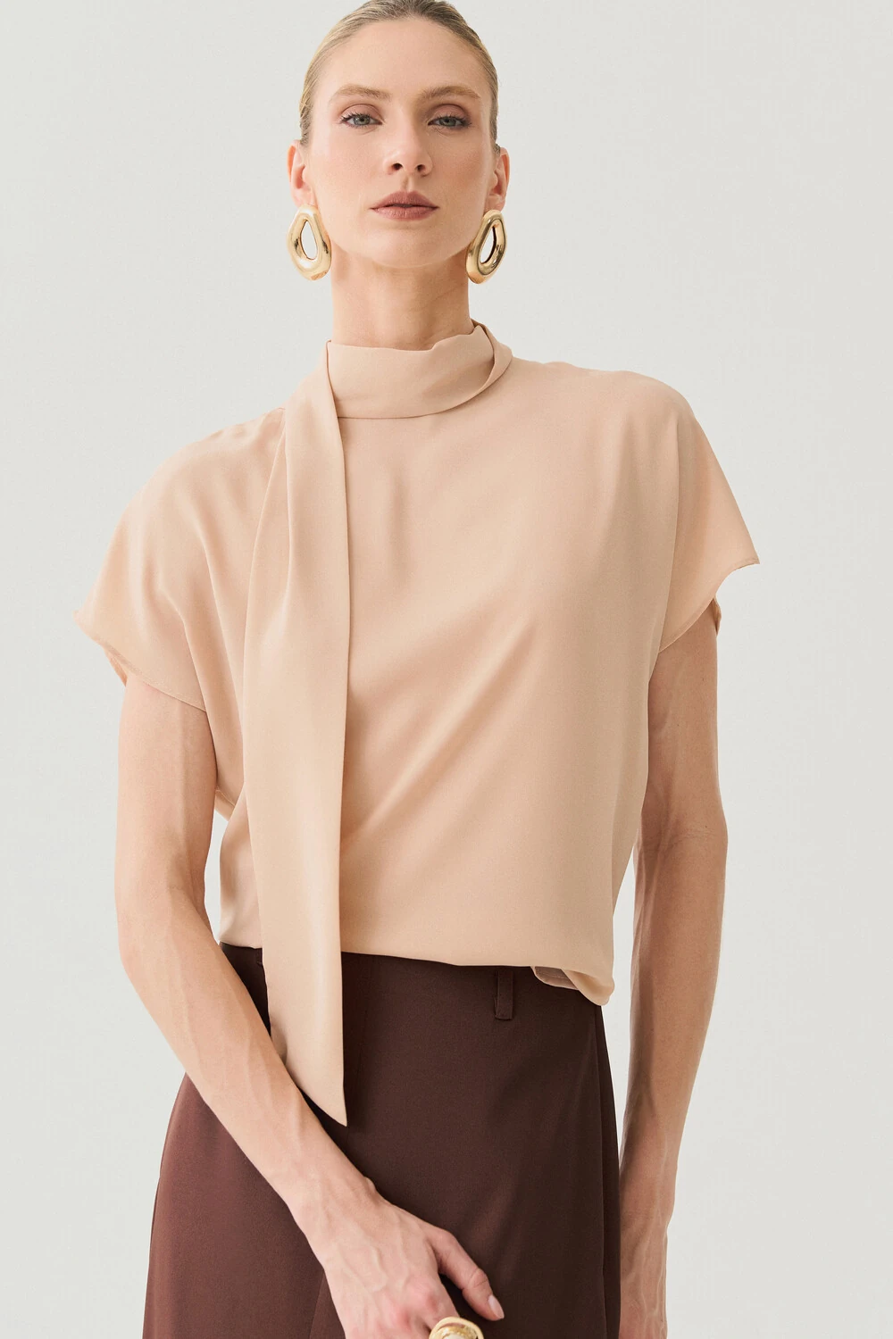 Blusa com design sofisticado e modelagem fluida, ideal para composições elegantes e versáteis.