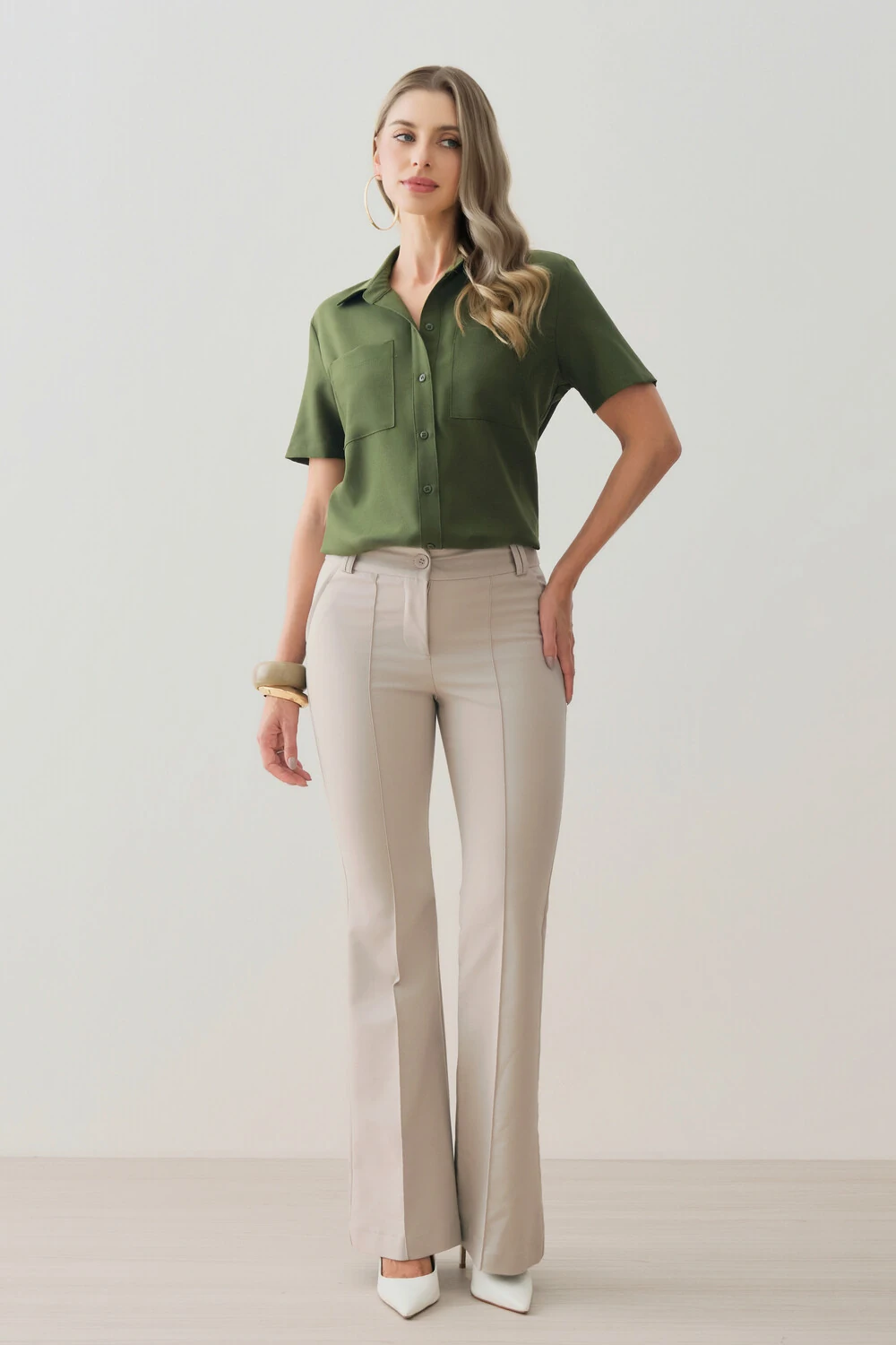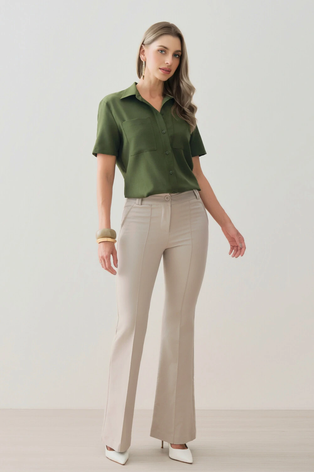 Com modelagem reta e caimento solto, é uma peça ideal para composições refinadas no dia a dia, no trabalho ou em ocasiões especiais.