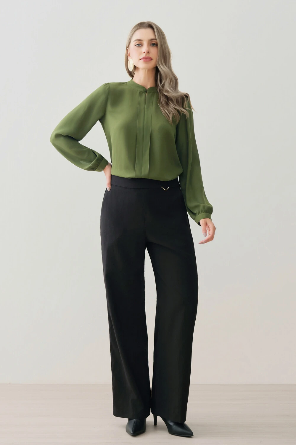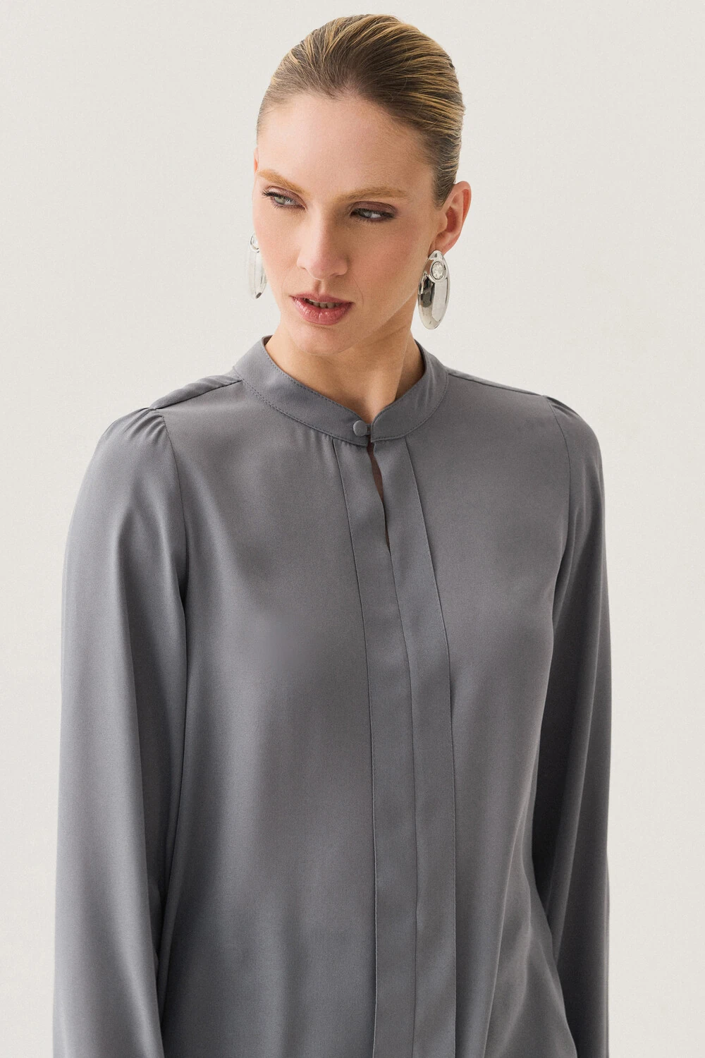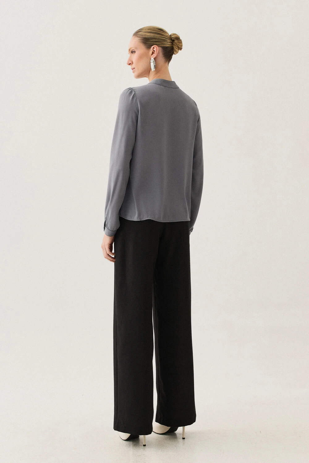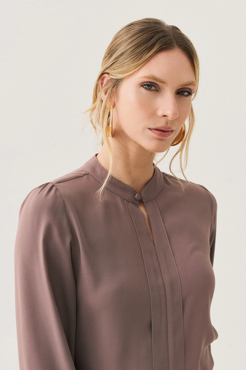 Blusa confeccionada em tecido de toque leve e caimento fluido, com visual elegante e acabamento delicado.