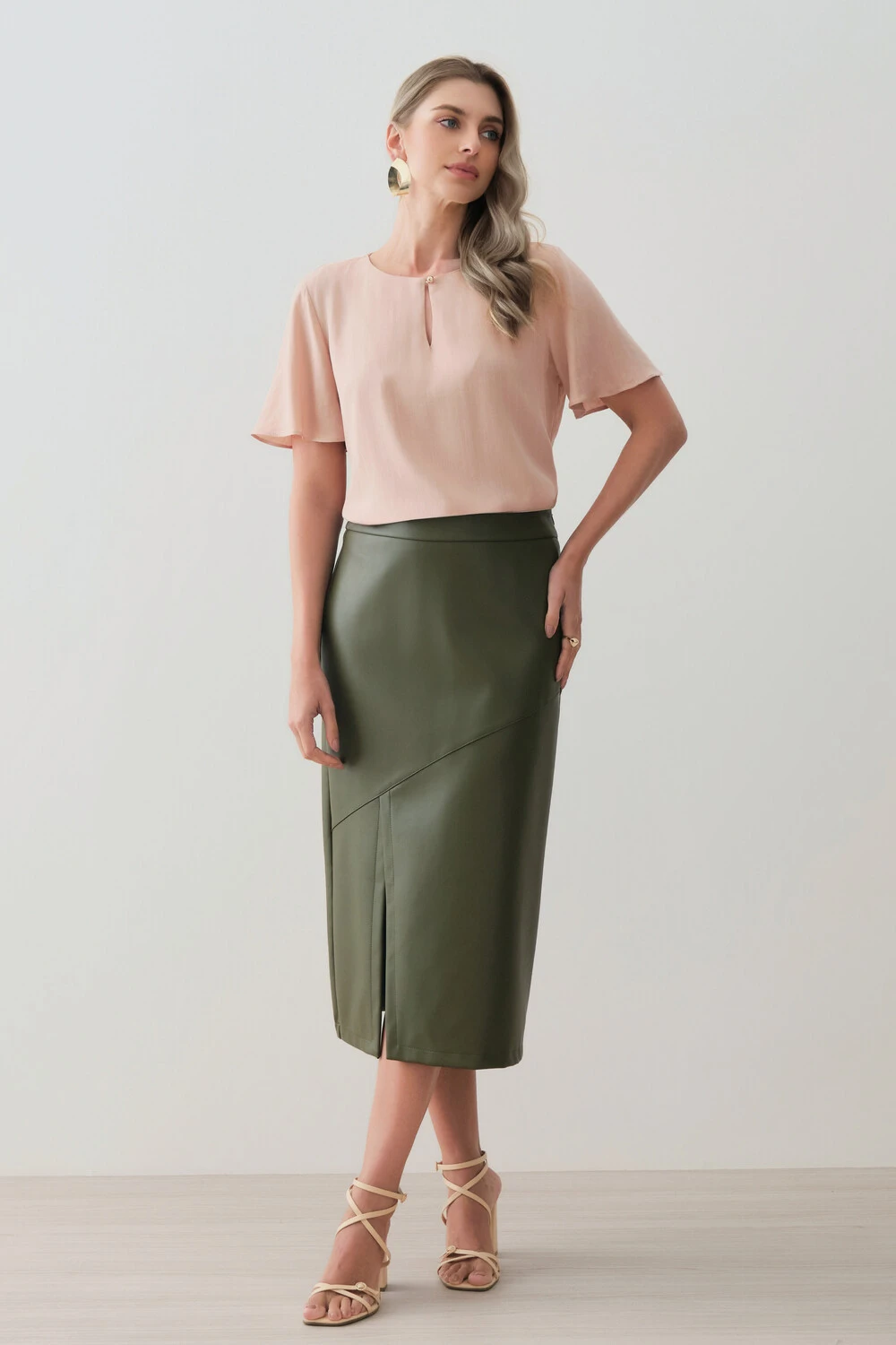 As mangas curtas evasê trazem leveza ao visual e proporcionam movimento suave ao vestir.